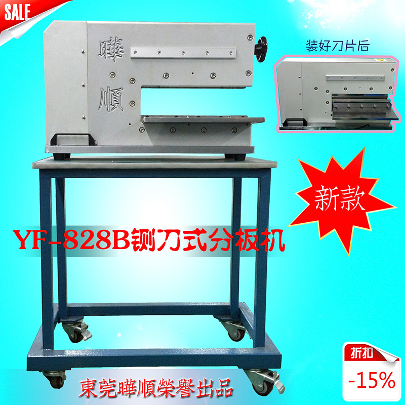 產(chǎn)品詳情 YF-828B氣動(dòng)式分板機(jī) Spec: Power:110V/200V AC 60HZ/50HZ Air pressure:5kgs/cm2 Output:5tons Adjustment range for knife distance:0-4mm Maximum length for cutting:350mm Size:L630*W240*H1350mm Weight:150kgs 產(chǎn)品特點(diǎn): △:切割過(guò)程中無(wú)振動(dòng),防止精密零件受損。 △上下刀高度均可調(diào)整,上部旋鈕依據(jù)PC板厚度調(diào)整刀具間隙,使符合V槽間厚度。 △吻合度由下刀分前段使用旋鈕調(diào)整,不需使用墊片,降低刀片及調(diào)整的困難度,刀片可多次重新研磨,節(jié)省高昂的刀片重購(gòu)費(fèi)用。 △無(wú)V槽設(shè)計(jì)之PC板或薄板可訂制托盤及防呆定位裝置。 △機(jī)器結(jié)構(gòu)堅(jiān)實(shí)操作容易,非熟練人員也可操作。